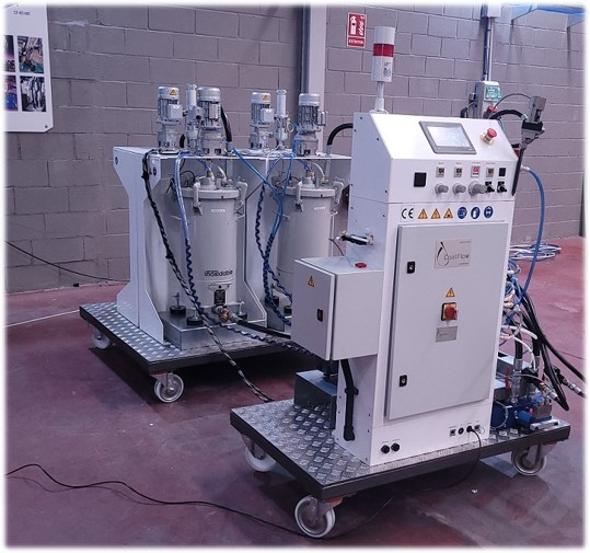 La serie INNOMIX SCV engloba varios equipos de altas prestaciones de mezcladores y dosificadores de materiales bicomponente, para todos aquellos clientes que necesiten un mixer industrial para aplicaciones complejas y de precisión, permitiendo incluirle varias opciones como control de temperatura en tanques y tuberias, agitadores, control de presión en catalizador, degasificador, etc. El sistema consta de dos bombas de precisión (acero reforzado) de desplazamiento positivo controladas por un servomotor, y nos permite ajustar ratios de mezcla de 100:100 a 100:5 (ajuste fijo de fabrica), con una viscosidad máxima de 500.000 cps. El software INNOMIXFLOW PRO incluido, permite controlar todos los parámetros necesarios como volumen de disparo, velocidad de disparo, tiempo de purga, gel time, niveles en tanques, presiones, control de producción, desgasificación, etc. Este equipo es ideal parea integrarlo en nuestros robots de 3 y 4 ejes COATFLOW CF Series, para automatizaciones de precisión, altas velocidades de procesamiento e industrialización de alto nivel productivo. . |